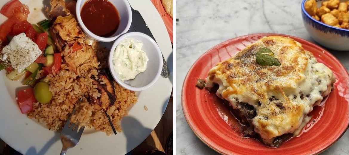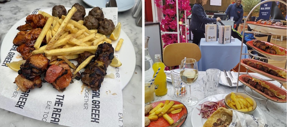 The Real Greek serves authentic Greek cuisine, including popular dishes like gyros, souvlaki, and a variety of meze.